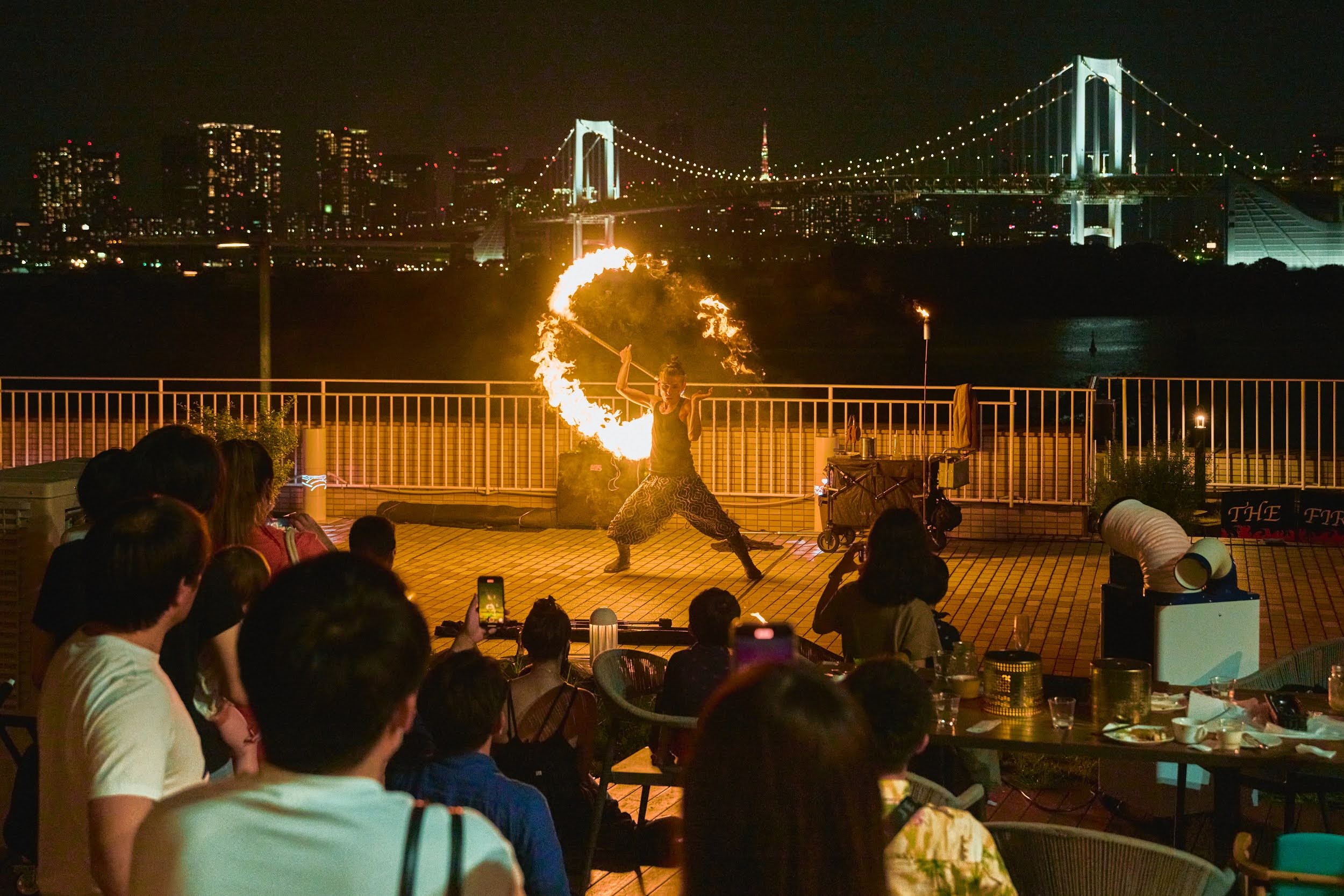 “THE FIRE SHOW” とは、ファイヤーパフォーマーRYUをはじめ、一人もしくは複数人のプロフェッショナルパフォーマーが炎を使い繰り広げるエンターテイメントショーです。